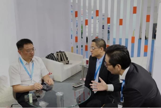 中宣部宣傳輿情研究中心主任、“學習強國”平臺總編輯劉漢俊蒞臨展臺交流