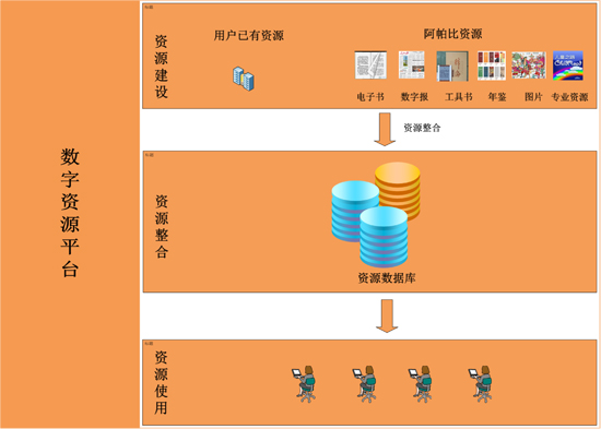 方正阿帕比數(shù)字資源平臺是一套用來管理、展示用戶購買的阿帕比授權(quán)數(shù)字資源(包括電子書、數(shù)字報、年鑒、工具書和藝術(shù)博物館)和用戶加工的自有數(shù)字資源的平臺系統(tǒng)。數(shù)字資源平臺不僅能夠整合多種數(shù)字資源,還對其進(jìn)一步整合、挖掘,從內(nèi)容層面對其進(jìn)行包裝,為用戶提供知識級的服務(wù)。還提供統(tǒng)一的數(shù)字資源發(fā)布頁面,統(tǒng)一的用戶管理認(rèn)證,統(tǒng)一的檢索入口。同時針對不同資源又有豐富的資源展示方式、導(dǎo)航方式和檢索方式,并能夠在內(nèi)容層面關(guān)聯(lián)不同類型的資源。