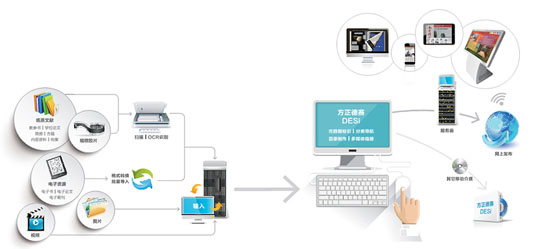 DESi數(shù)據(jù)加工與安全發(fā)布整體解決方案,基于成熟的方正Apabi網(wǎng)絡(luò)出版(eBook)解決方案之上,把擁有核心CEBX轉(zhuǎn)換技術(shù)和DRM技術(shù)軟件提供給客戶,保證了客戶自有特色資源的加工質(zhì)量和自有資源防擴(kuò)散。使各企事業(yè)單位以較少的成本,快速建立的電子資料室。具有占地少、硬件和軟件投入小、數(shù)據(jù)量大、更新迅速、借閱方便,不受時(shí)間和地點(diǎn)限制等優(yōu)點(diǎn)。該解決方案涵蓋了電子資源格式轉(zhuǎn)換、標(biāo)引、分類、目錄制作、多媒體鏈接,安全發(fā)布系統(tǒng)的全文檢索、分類瀏覽、下載瀏覽、收藏等全面功能,并為用戶提供高質(zhì)量的下載服務(wù)和方便、好用的閱讀工具。